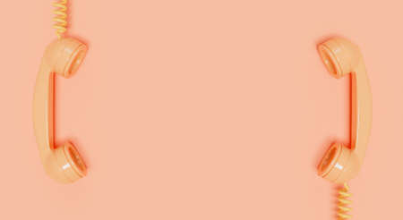 Vintage telephone headset on a pumpkin colored background with space for text in the center. 3d render