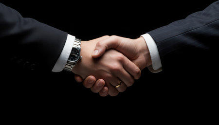 Close up of a firm handshake on a black backdrop