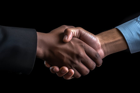 Photo of two men shaking hands on a black background