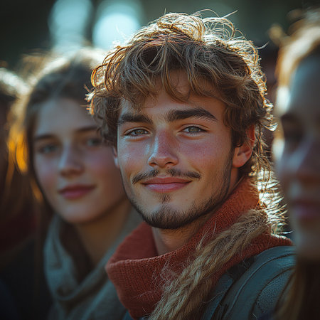 Confident man stands out in busy crowd, radiating charisma