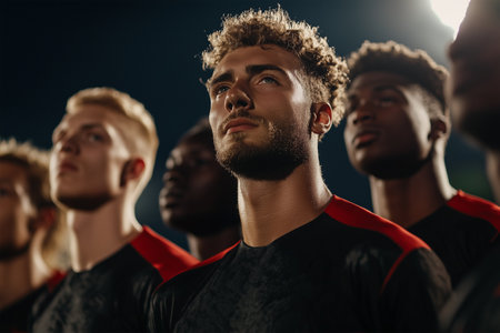 Team of young men standing in solidarity during the national anthem
