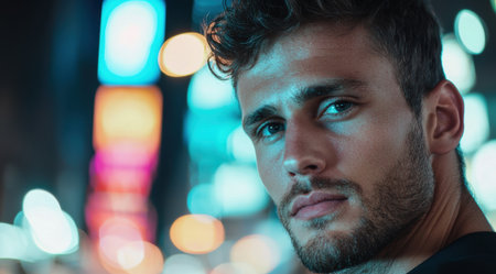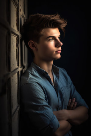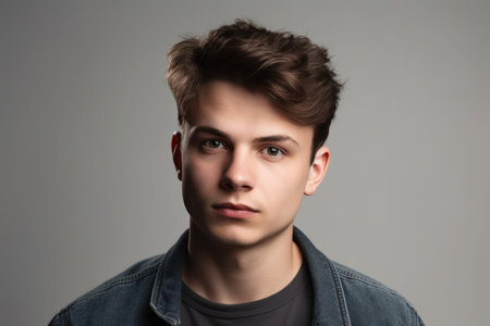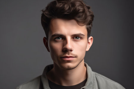 A striking portrait of a young man with a serious expression, captured in a serene studio setting. This image highlights confidence and introspection.