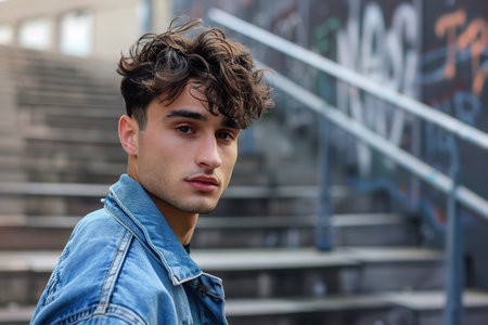 Portrait of a handsome young man in an urban setting. Looking at camera