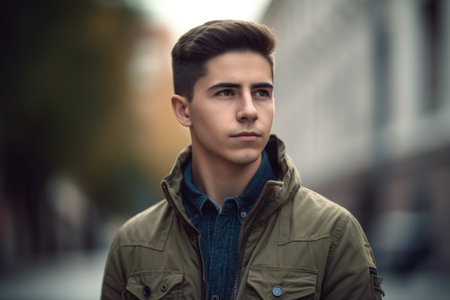 A close-up portrait of a young man with a thoughtful expression, showcasing natural beauty and modern style. Ideal for lifestyle or fashion themes.