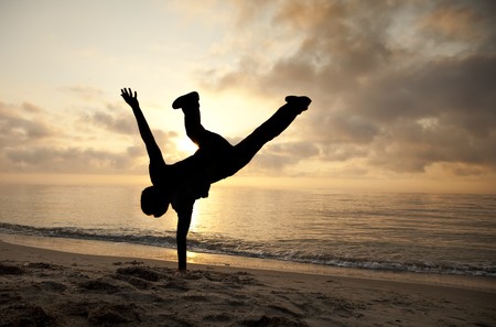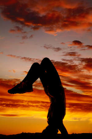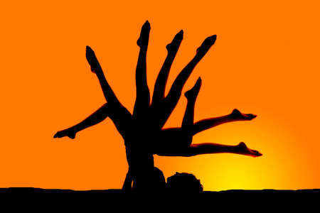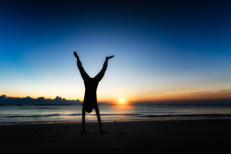 Handstand. Silhouette of a woman doing handstand at sunrise.