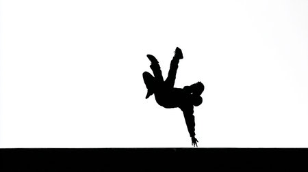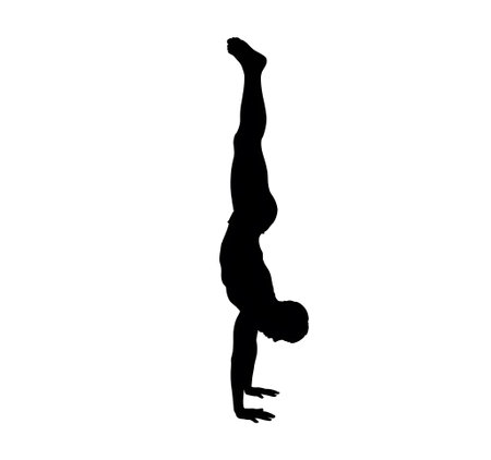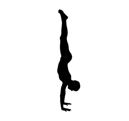 Gymnast showing silhouette of a gymnast performing a handstand on white background.