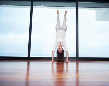 Women's handstand exercise at home