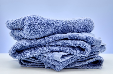 Folded blue cotton towels close-up