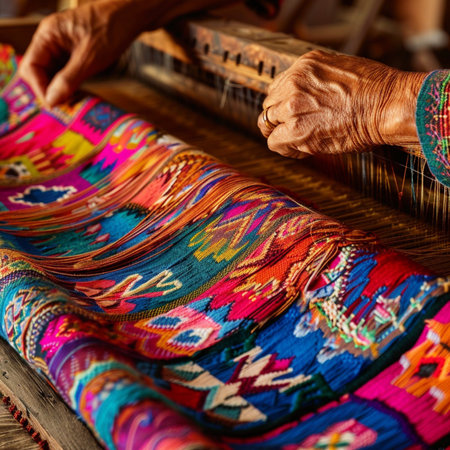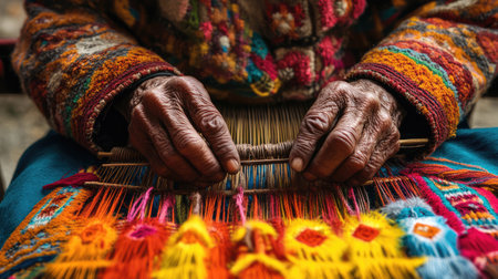 Close-up of artisan creating handmade textile with meticulous care, showcasing cultural heritage and craftsmanship