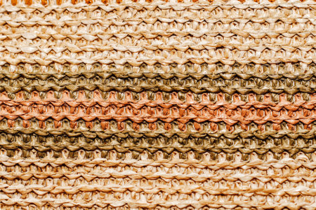 Explore the intricate details of natural fiber weaving in this stunning close-up photograph, showcasing the rich textures and patterns of handmade craftsmanship.