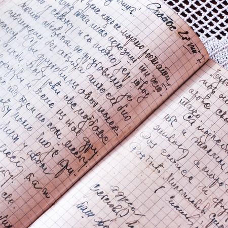 Fountain pen on an ancient handwritten letter. Old story. Retro style.