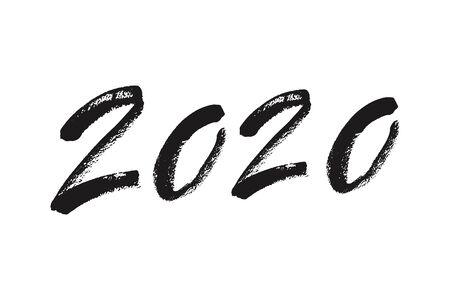 Happy New Year 2020 calligraphy. Ink lettering. Hand drawn calligraphy. Handwritten black numbers. Vector illustration.