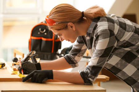A woman worker in the carpenter workroom renovation