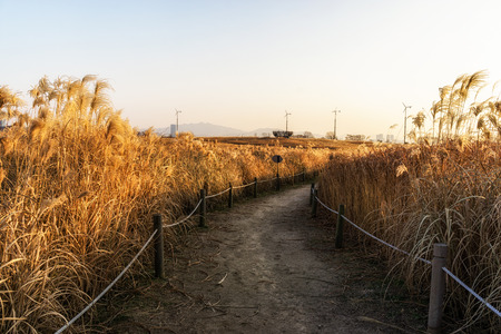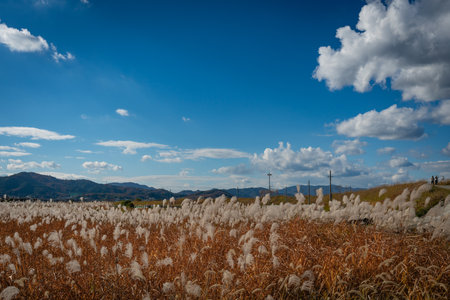 Reed field and autumn sky landscape in Korea