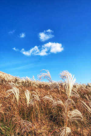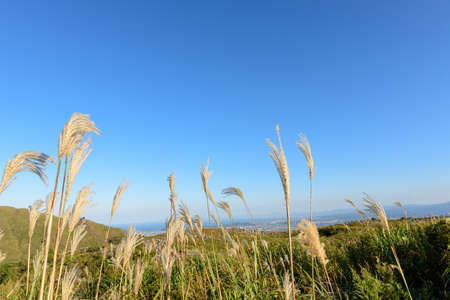 The refreshing blue sky of autumn and the susuki of the meadow (Fukuoka Prefecture)