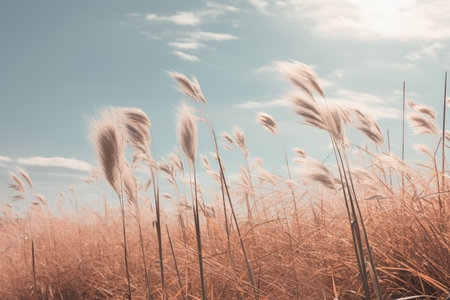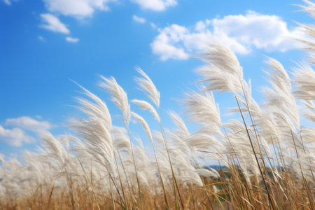 A Serene Dance: Silver Grass Swaying Amidst a Blue Sky