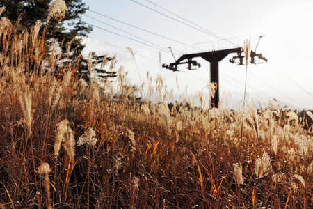 Pampas grass on the top of the hill in autumn.