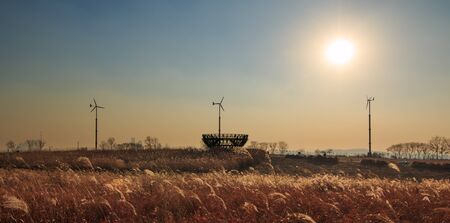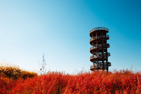 Observatory tower and East Asian seepweed field. Autumn of Gaetgol Eco Park in Siheung, Korea