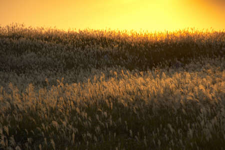 Susuki of Hiraodai in autumn shining in the sunset (Fukuoka Prefecture)