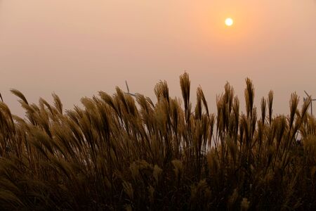 Silhouette of tall reeds or silver grass taken against the sunset. Taken in Haneul Park, Seoul, South Korea