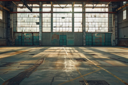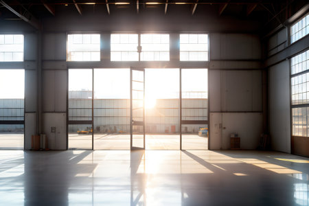 Industrial Bright Light from Hangar Doors Symbolizing Freedom and Hope in Grunge Garage
