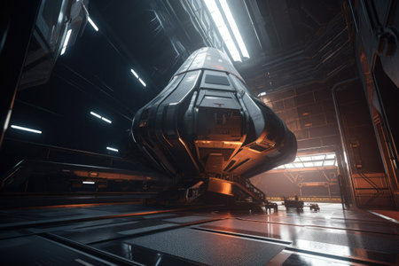 shot of a futuristic spacecraft sitting on a launch pad in space, created with generative ai