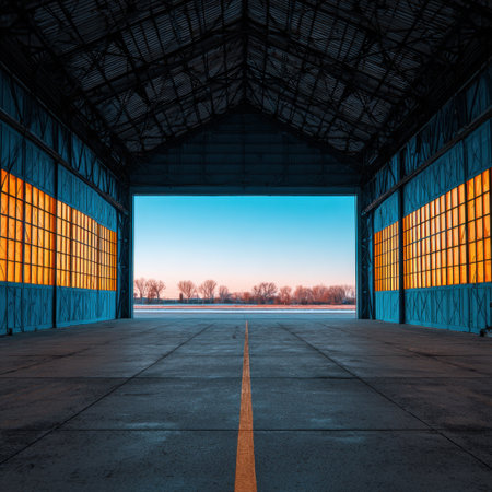 Bright light in open hangar doors
