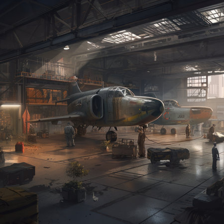 Aviation maintenance hangar, mechanics, aircraft repairs, technical expertise Generative AI