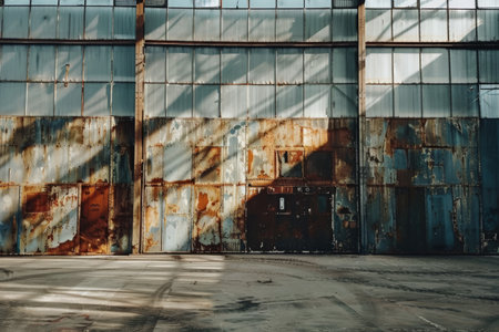 Industrial warehouse with rusted metal walls AI generated