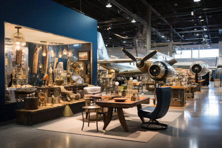 A commercial airliner parked in a hangar highlighting the facilitys size Antique propeller fighter plane in a museum. Concept Airliner in Hangar, Hangar Size, Vintage Fighter Plane, Museum Display