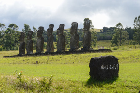 Ahu Akivi, Easter Island - July 11, 2017: Moai altar of Ahu Akivi