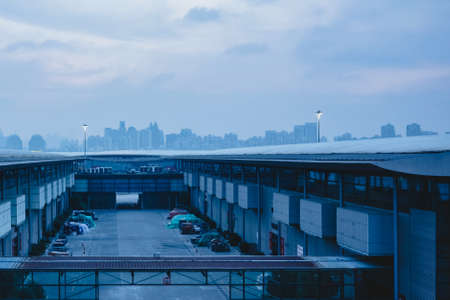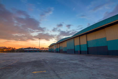 Warehouse under sky at sunset in Yangon, Myanmar.