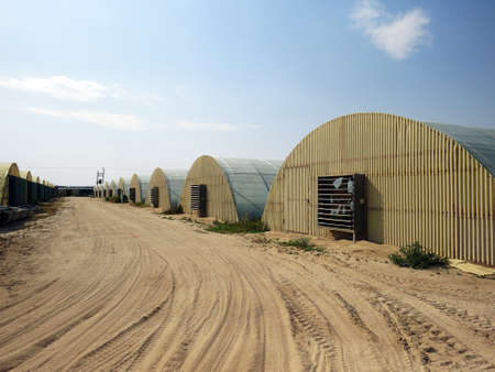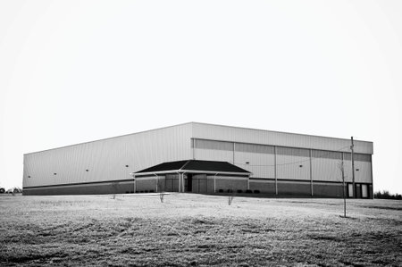 Modern new company warehouse building, farm buildings by the field, outdoors theme concept vintage relaxing.