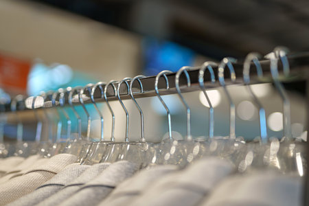 Close up of clothes hanger in a clothes store, shallow depth of field