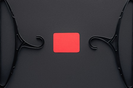 top view of hangers and empty red card for black friday