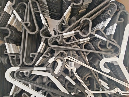 close up of clothes hanger with nuber color sizing label.