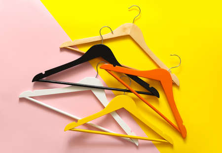 Clothes hangers. Many different hangers for clothes. A stack of hangers for clothes.