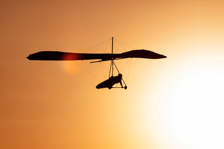 Hang glider in the sunset sky. Beauty of extreme sport. dream to fly come true.