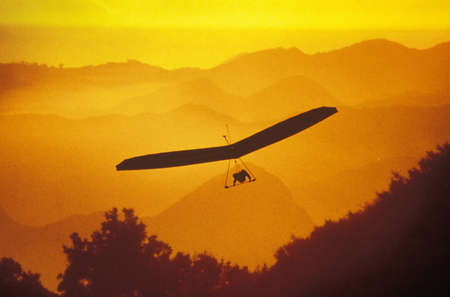 Solar Sailing Hang Gliding in sunset silhouette, Malibu, CA