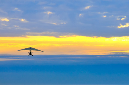 motor hang glider in the cloudy sunset
