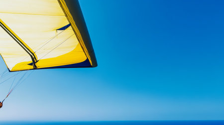 Bright Yellow Hang Glider Soaring over Clear Blue Ocean Horizon.