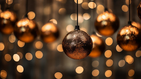 Christmas balls in warm tones, perfect for use in vibrant stage backgrounds, festive colors by generative AI