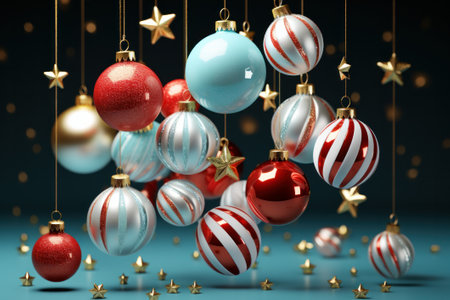 3d render of red and blue christmas balls with golden stars