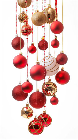 Red and gold christmas baubles isolated on a white background