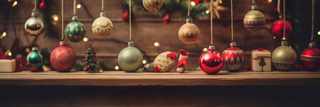 vintage-inspired banner with nostalgic Christmas ornaments and classic typography.