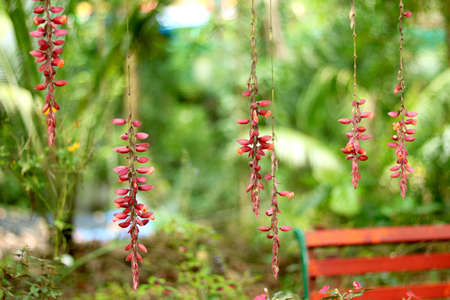 Bleeding heart vine or Clerodendrum thomsoniae Balf or Bag flower or LAMIACEAE or red flower or pink flower in the garden