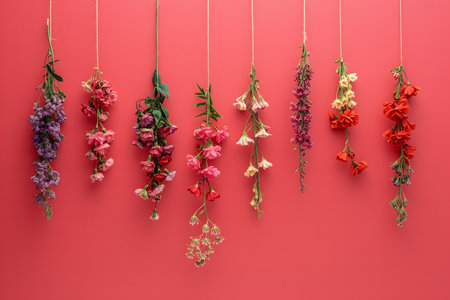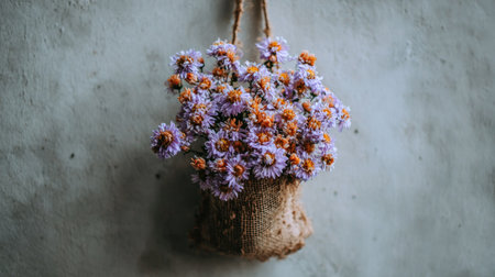 Rustic hanging dried flowers in cozy home interior with natural lighting. That the image is generated using AI.