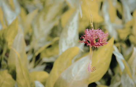 A vibrant pink flower stands out against a lush backdrop of green leaves, capturing the essence of nature's beauty.