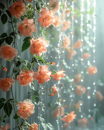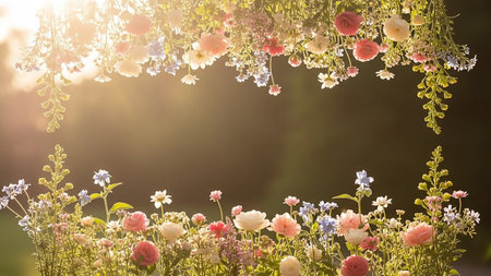 A close-up of blooming flowers creates a lively and enchanting atmosphere.