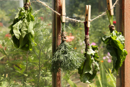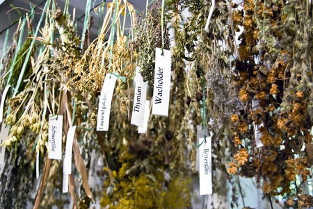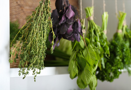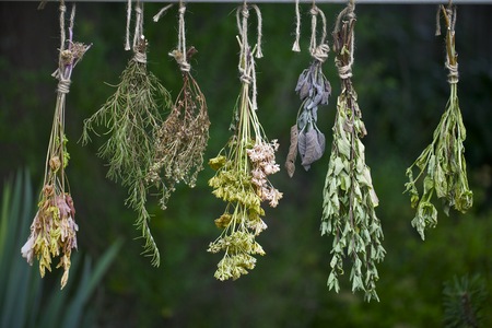 Set of herbs hanging and drying